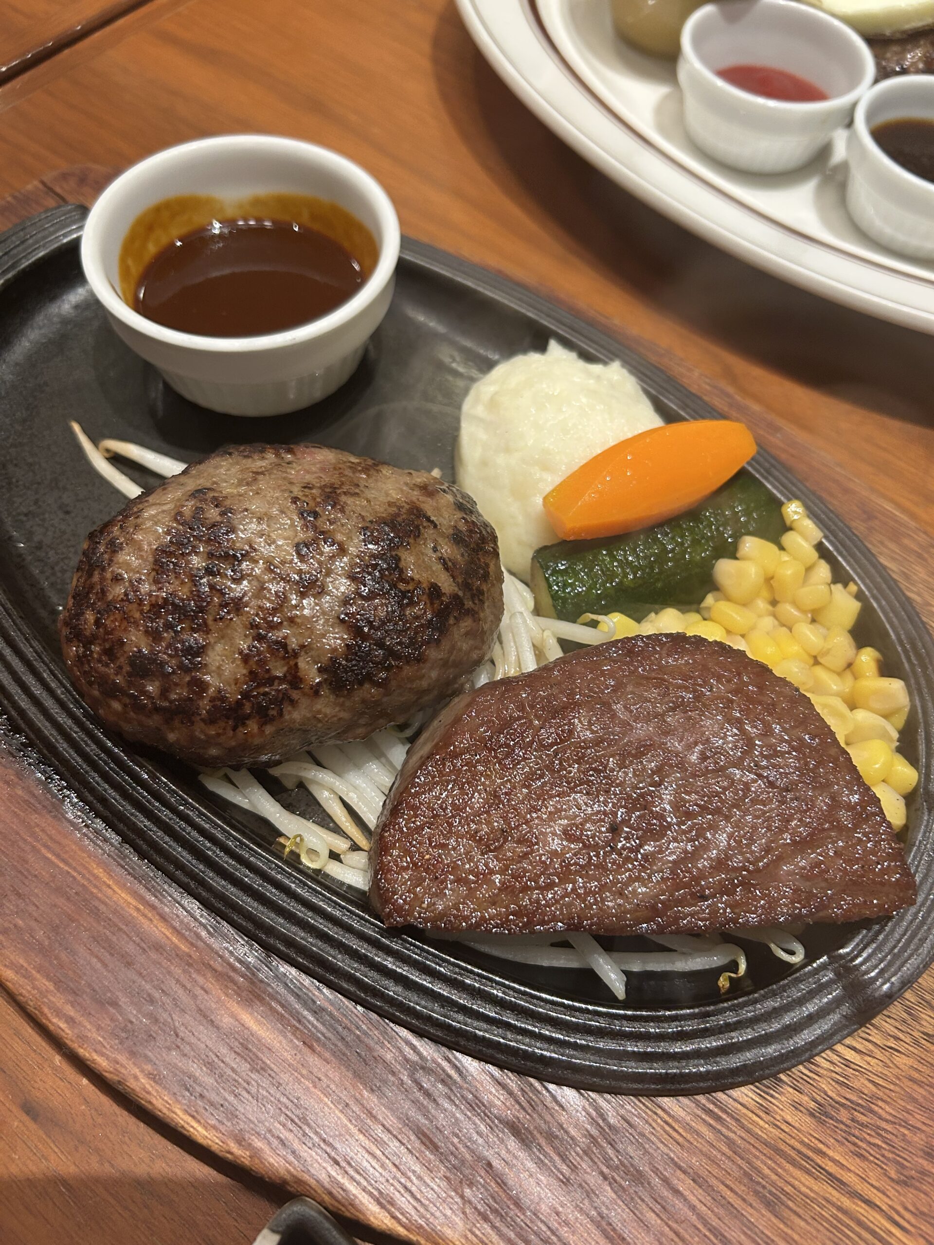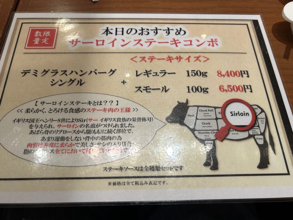 ステーキはお肉屋さんだけあって、あぶら滴るこのサーロインは口の中で広がって驚きの旨さを与えてくれます。