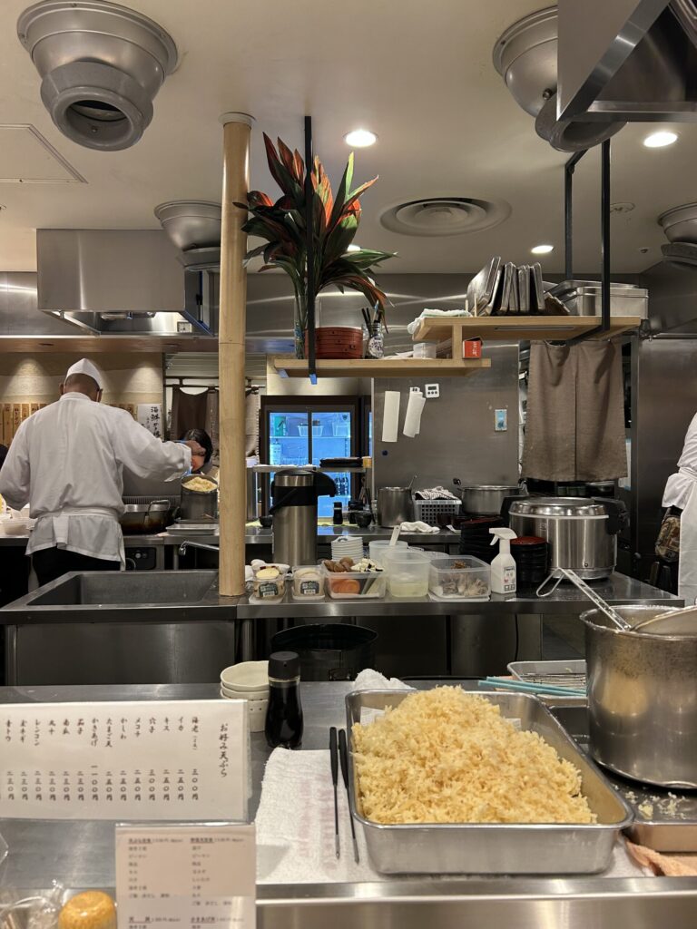 カウンターからの厨房の眺め